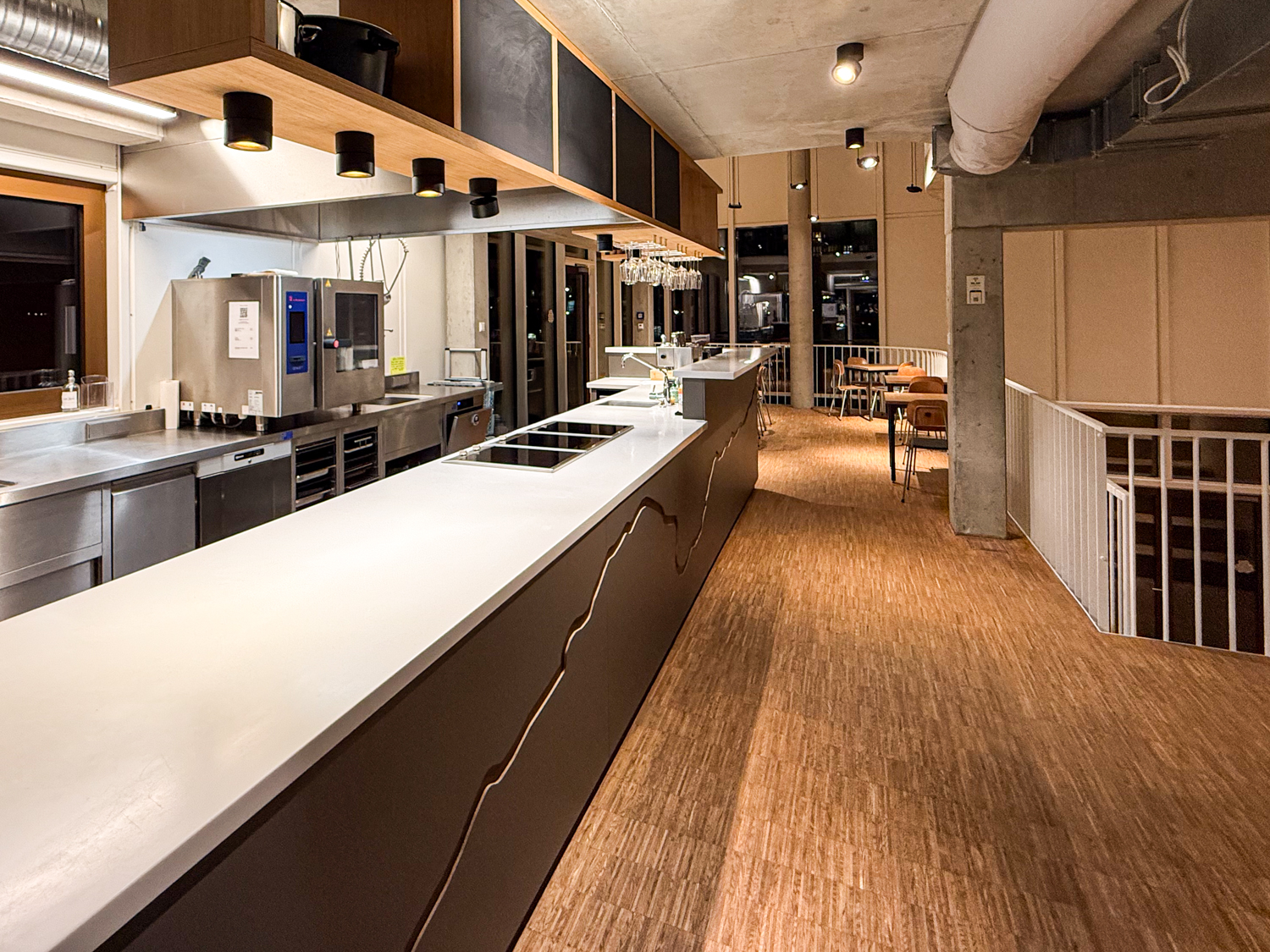 Der Abend findet im KreaTiefgeschoss der Baugemeinschaft HalbInsulaner statt - eine tolle Location mit semiprofessioneller, offener Küche und Gastraum direkt am Versmannkai mit Blick aufs Wasser.
